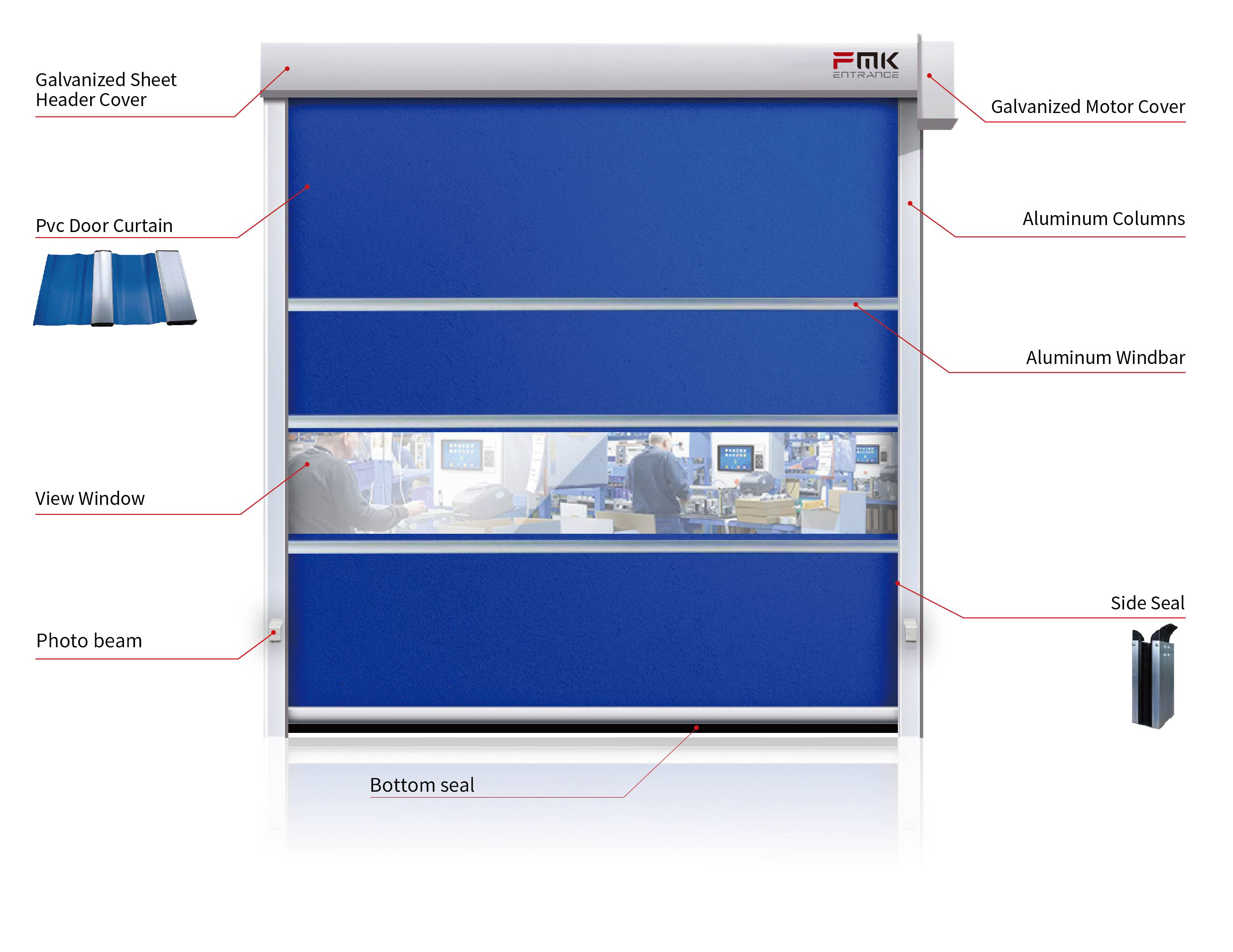 High-speed rolling doors typically used in industrial and commercial settings. They are designed to open and close quickly, providing benefits like improved energy efficiency, security, and productivity. These doors are commonly used in warehouses, manufacturing facilities, and logistics centers to facilitate the smooth flow of goods and personnel.